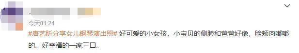 对此,网友纷纷感慨。“好可爱的小女孩,小宝贝的侧脸和爸爸好像,脸颊肉嘟嘟的。好幸福的一家三口。”
